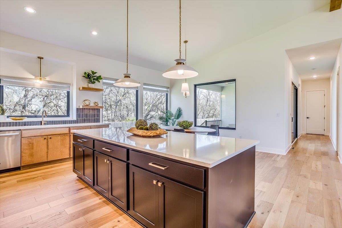 Gorgeous mid-century modern Kennedy floor plan by Sharp Homes. Split bedroom plan with the master suite on the opposite side of the home with a tile walk-in shower, dual sinks, and a spacious closet. 5 bedrooms, 3 bathrooms, and over 3,700 livable square feet. The open kitchen features a large walk-in pantry, quartz island, ample cabinet/counter space and spacious dining area. The covered lanai is a great space to unwind after a long day. The open family room is perfect for entertaining guests as it features a wet bar.