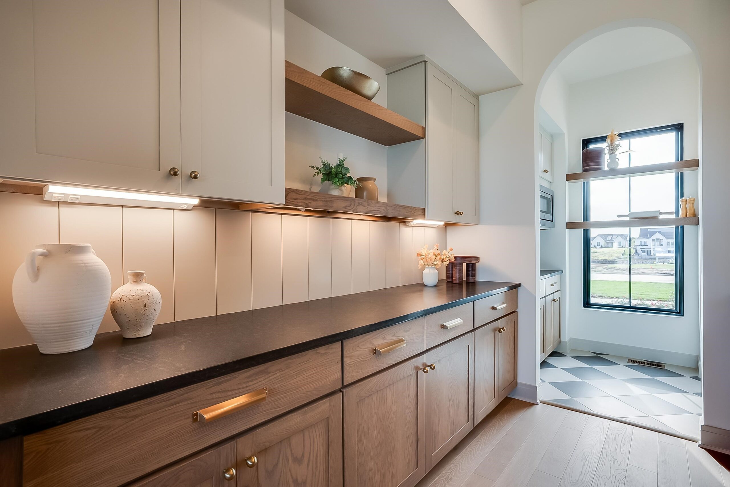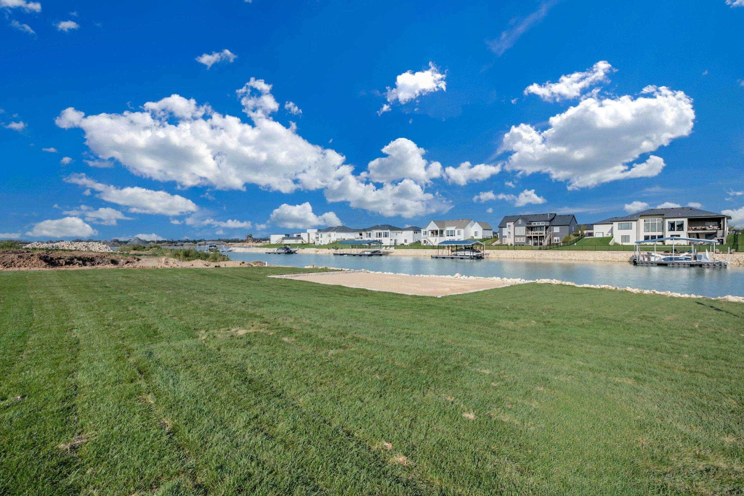 Welcome to lakeside luxury at its finest. Situated on a breathtaking lakefront lot in the highly coveted Castaway community, The ModestoPlan by Sharp Homes combines timeless elegance from the homes of yesterday, with the modern luxury features and finishes you expect in a home today. From the moment you arrive, the classic elevation accented with natural stone makes a stunning first impression. Step through the arched entryway and into a warm and inviting living room where vaulted beamed ceilings, a gas fireplace,and floor-to-ceiling windows frame show-stopping views of the sparkling lake. Thoughtfully designed arched niches with custom cabinets and floating shelves add a touch of elegance and character. The seamless indoor-outdoor living design includes a large covered deck and an expansive lanai with a second gas fireplace and overhead garage door—perfect for unforgettable gatherings and legendary garage parties. In the kitchen, no detail has been overlooked. Enjoy a spacious island, gas range, dual ovens, granite countertops, custom wine bar, butler’s pantry with bonus workspace, and a dedicated Costco closet for optimal storage. The primary suite is a private sanctuary featuring vaulted, beamed ceilings, dual vanities, a freestanding soaker tub nestled in a graceful arched niche, a fully tiled shower, and a massive walk-in closet complete with a granite-topped dresser and direct access to the laundry room. A discrete pocket office with built-in desk is tucked away just off the main living space—ideal for working from home. Additional main floor bedrooms each include walk-in closets; one offers a private ensuite, while the other enjoys access to a full hall bath. The fully finished lower-level walks out at grade to your private beach area and boasts a sprawling family room with panoramic lake views, an elegant wet bar, and direct access to a full bath from the back of the home—perfect for a day spent on the beach or out on the boat. Two additional bedrooms downstairs each offer cavernous walk-in closets and private bath access. The basement also includes two large storage areas, with one ideal for a future home gym. All of this, located in Castaway, Wichita’s premier lakeside community featuring a 135-acre spring-fed surf lake, lakefront clubhouse and pool with neighborhood beach area, playground, basketball court, and some of the most incredible views in the city! Start calling Castaway home in the incredible Modesto Plan by Sharp Homes.Some information may be estimated and is not guaranteed. Pricing is subject to change without notice. Please verify schools with USD 266.